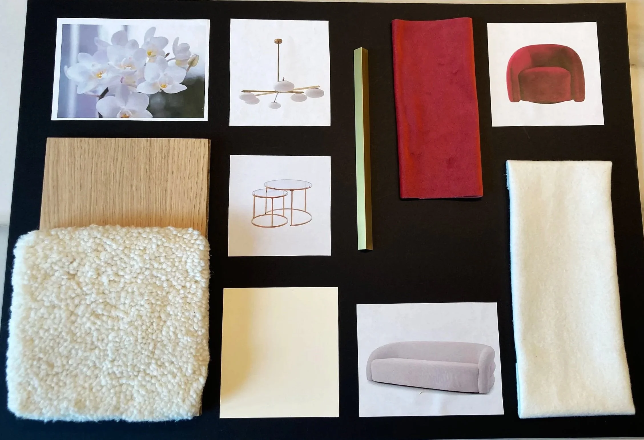 Basierend auf unserem Gespräch erstelle ich bis zu drei Möblierungsvarianten des Raumes (im Grundriss) sowie ein Moodboard mit Farben und Stimmungen, die zu Ihnen und Ihrem Zuhause passen. Ich arbeite mit innovativen Visualisierungstools, um Ihnen bereits früh im Prozess eine konkrete Vorstellung Ihres zukünftigen Raumes zu geben – stimmungsvolle Bilder, die Atmosphäre, Stil und Wirkung greifbar machen. Zusätzlich erhalten Sie ein Materialien-Moodboard mit konkreten Vorschlägen zu Textilien, Oberflächen und anderen haptischen Komponenten. Wir besprechen die Materialien bei Ihnen vor Ort und Sie entscheiden.
